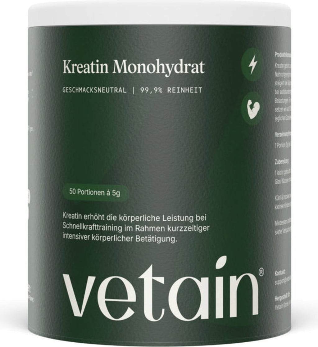 Monohydrat kreatyny Vetain jest wegański, bardzo drobno zmielony i rozpuszcza się bez wysiłku w wodzie, soku lub koktajlu proteinowym. Proszek wspomaga intensywne, krótkotrwałe sesje treningowe. Papierowe opakowanie i dołączona łyżeczka do porcjowania sprawiają, że jest wyjątkowo łatwy w użyciu. Neutralny smak i czystość gwarantują elastyczną integrację z każdą rutyną.